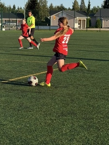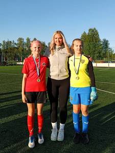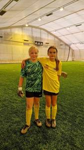 Kuva 2. Vöyrin turnauksessa mukana Ilona ja Janina. Molemmat saivat kehuja pelirohkeudesta ja pallonkäsittelytekniikasta.