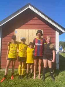 Kuva 1. Kokkola Cupissa mukana Alida, Janina, Nella ja Virve. Kuskina ja valmennusapuna toimi Virve. Huom! Pelattiin 2013-syntyneiden sarjassa ja pysyttiin erinomaisesti mukana pelinopeudessa.